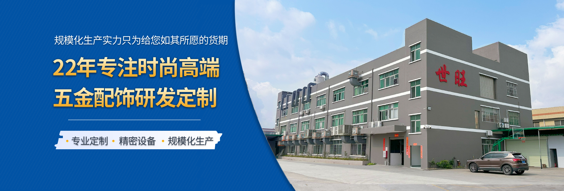 世旺五金是一家專業從事手袋箱包五金配飾定制生產的工廠,始創于2004年,至今19年五金配飾定制經驗,是集研發、設計、制造、電鍍、銷售于一身的企業,擁有14000多平的生產基地,全自動化生產能力,自有模具制造車間和電鍍工廠,日產能20多萬件,還有強大的技術團隊和高效的銷售網絡。我們以市場需求為導向,不斷探索和創新,在產品品質和性能上達到領先水平。 我們的產品包括各類五金制品,如高端皮具手袋、消費電子、禮品/工藝品包裝、寵物穿戴、汽車裝飾等領域五金配飾,應用廣泛,覆蓋行業多。 以客戶需求為中心,為客戶提供全方位的一站式服務,包括售前咨詢,生產跟進,售后服務等等。提供保姆式顧問式服務,與品牌商、手袋廠等共同打造好產品,好IP。